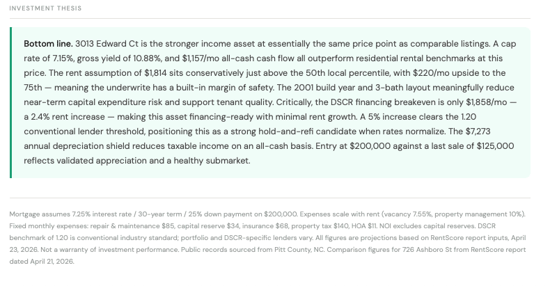 RentScore Deal Spotlight: Winterville, NC - Cash Flow, Financing Edge and our take